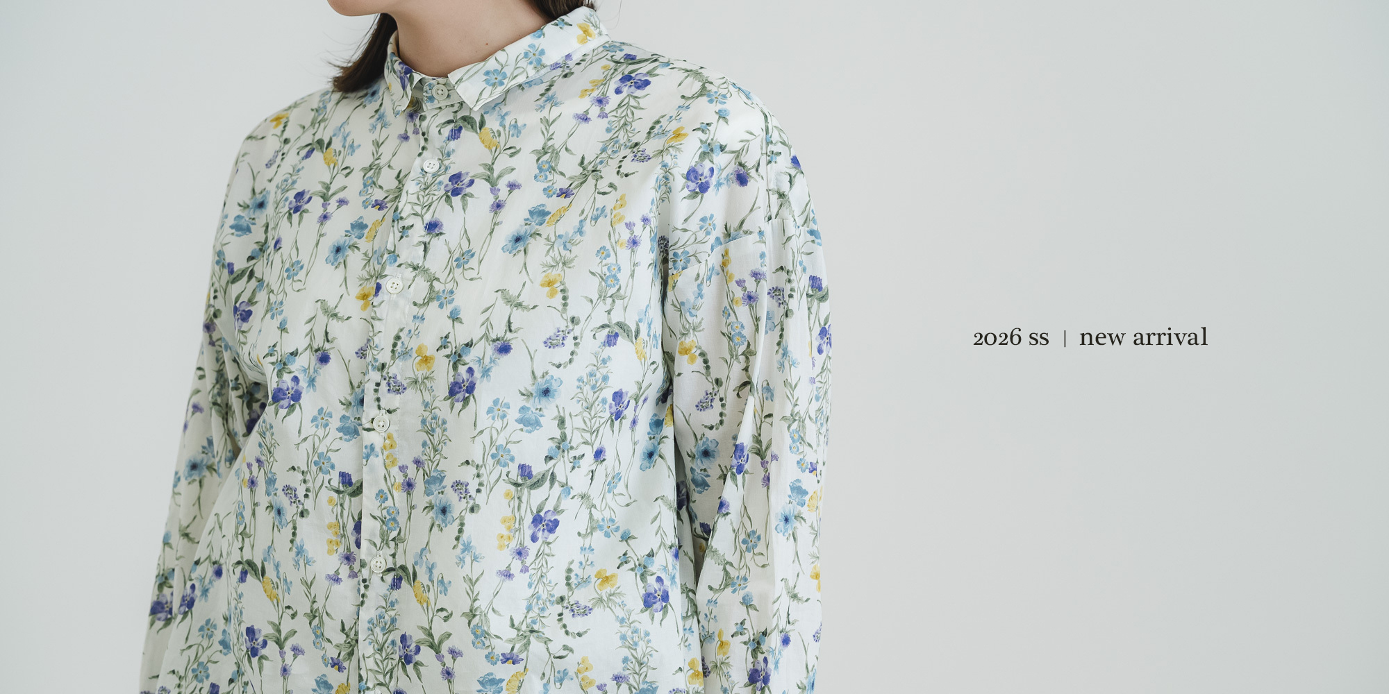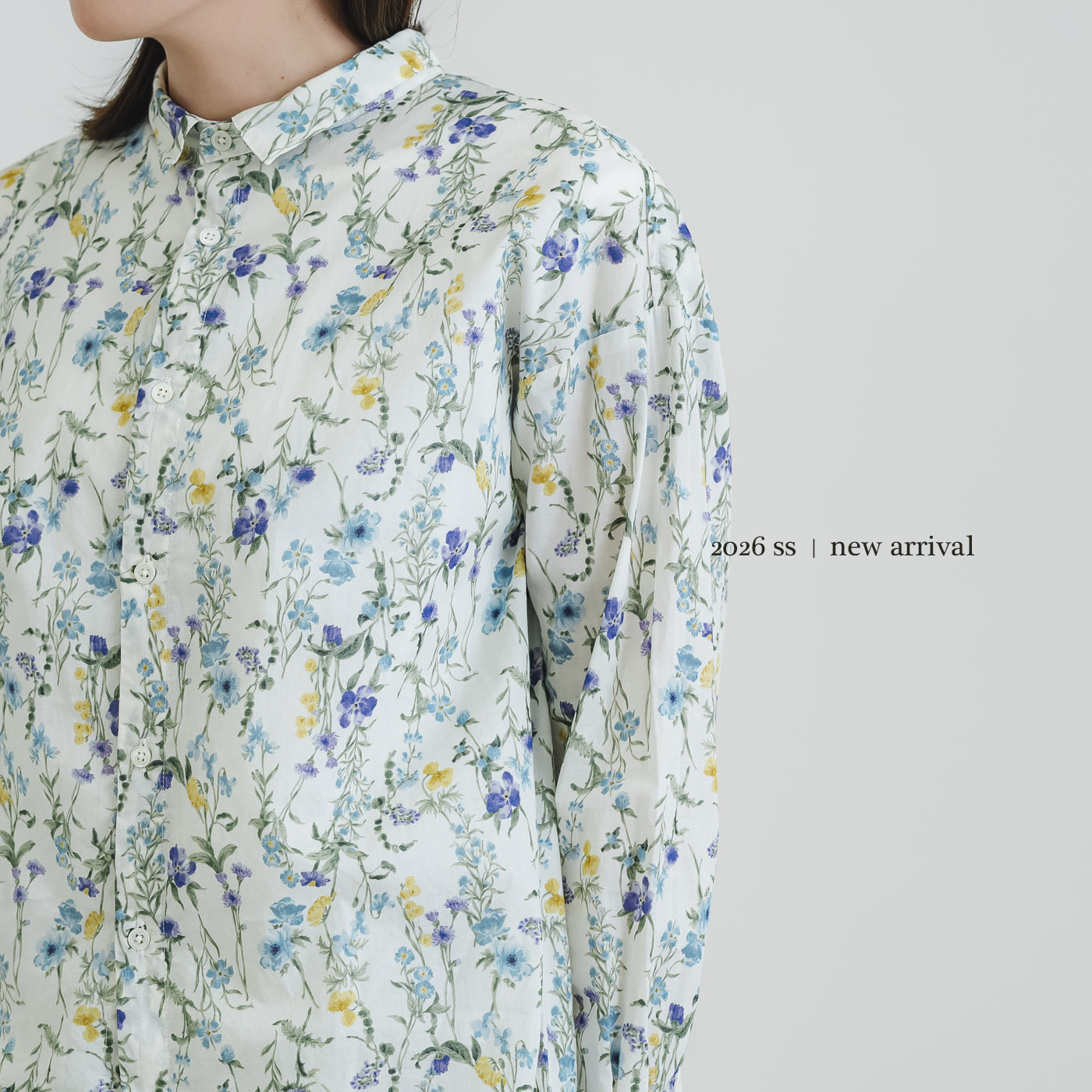 ローン花柄ptスタンドカラーAラインワイドシャツ