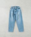 100%のデニムの風合いを残しながら微ストレッチが入った特別なデニム。ムラ色を使用することでヴィンテージ感のある表情に仕上がっています。また通常よりもインディゴ染色を深くすることで、色の濃淡がつきやすく経年変化もより楽しめます。レーザーと手擦りを組み合わせたリアルな手法で中古感を出しました。ワンウォッシュは素材そのもののナチュラルな風合いをよく現しています。