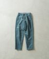 【二重織コーデュロイ】珍しい二重織の組織のコーデュロイ素材。表は細かい畝のコーデュロイ裏は肌触りの良い裏起毛で仕上げています。製品にしてから染め上げる製法を採用することで味のある豊かな色合いに仕上がっています。ストレッチ性もありスウェットパンツのような履き心地です。