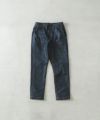 【10oz 高密度デニム】10oz という軽めのデニムですが、超高密度に織り上げることによりしっかりとしたハリ感のある風合いに仕上がっています。また、毛焼き加工をしており、毛羽の少ない上品な表情のデニムになります。織りでハリ感を出しているので、ヘビーユースすることで程良くしなやかに育てていくことが可能です。