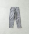 【二重織コーデュロイ】珍しい二重織の組織のコーデュロイ素材。表は細かい畝のコーデュロイ裏は肌触りの良い裏起毛で仕上げています。製品にしてから染め上げる製法を採用することで味のある豊かな色合いに仕上がっています。ストレッチ性もありスウェットパンツのような履き心地です。