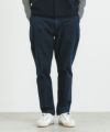 インディゴの糸を使用したチノ(ウエポン)素材です。デニムと比べると経糸が細く打ち込み本数が多い為少し表面感は綺麗目です。その素材に洗い加工をする事で最初からあたり感のあるカジュアルな雰囲気に仕上げました。