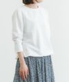 伸縮性を持ちながらもカットソー特有の型崩れを防ぐ特殊なインレイ編みが施された素材です。空紡糸を使用しているので肌触りはさらっとしながらも、着用するとふっくらとした軽さを感じることができます。