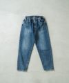 100%のデニムの風合いを残しながら微ストレッチが入った特別なデニム。ムラ色を使用することでヴィンテージ感のある表情に仕上がっています。また通常よりもインディゴ染色を深くすることで、色の濃淡がつきやすく経年変化もより楽しめます。レーザーと手擦りを組み合わせたリアルな手法で中古感を出しました。ワンウォッシュは素材そのもののナチュラルな風合いをよく現しています。