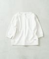 【Wジャガード】18番手の程良い太さの空紡糸を使いジャガード編み機であえて無地を編み上げることで凹凸感のあるドライな肌触りを持ちつつ、ふっくらとしたニットとカットソーの中間のような独特な素材感に仕上がりました。