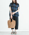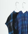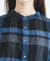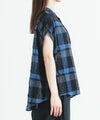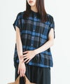 モダールシャーリングチェックノースリーブスタンドシャツ