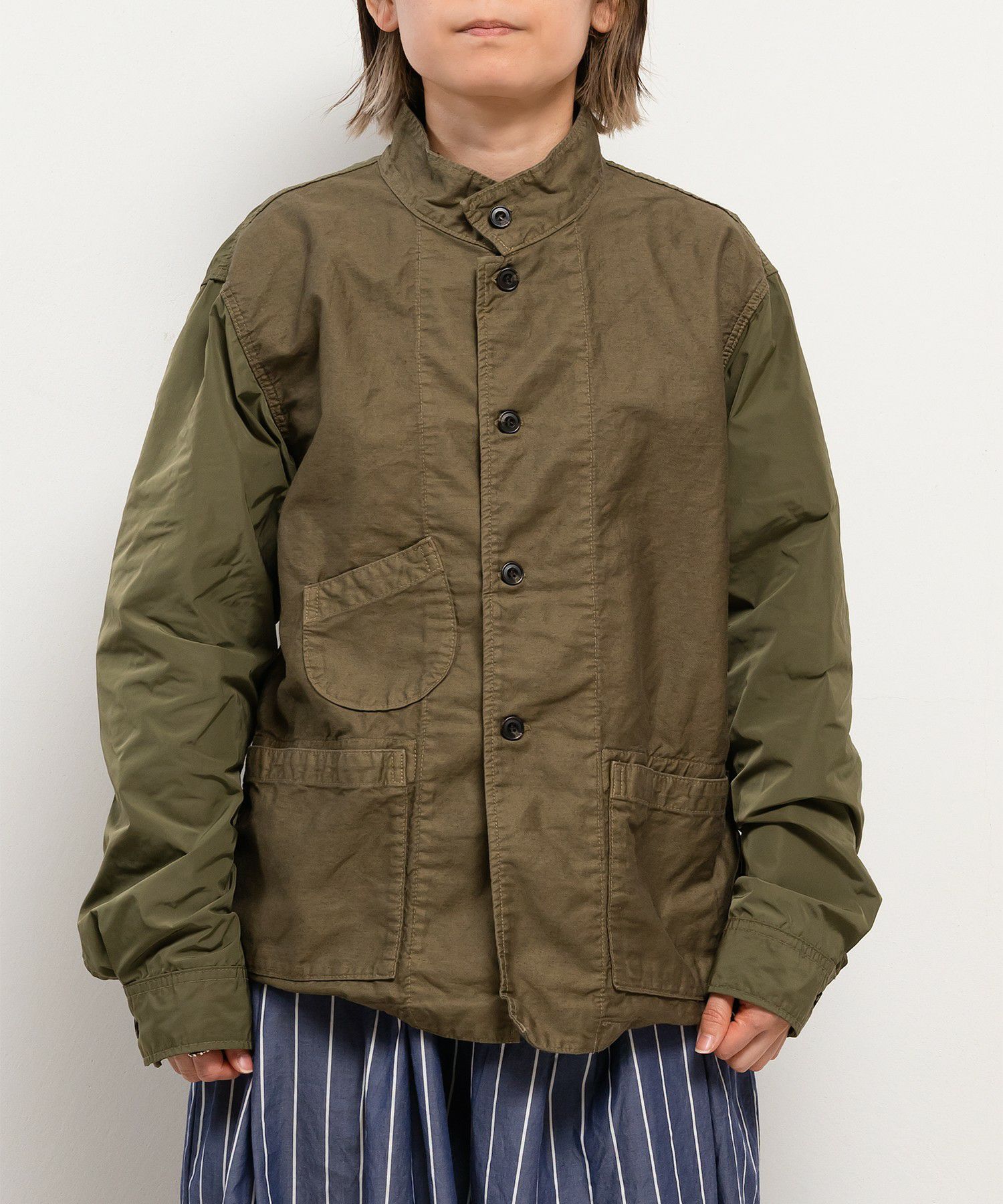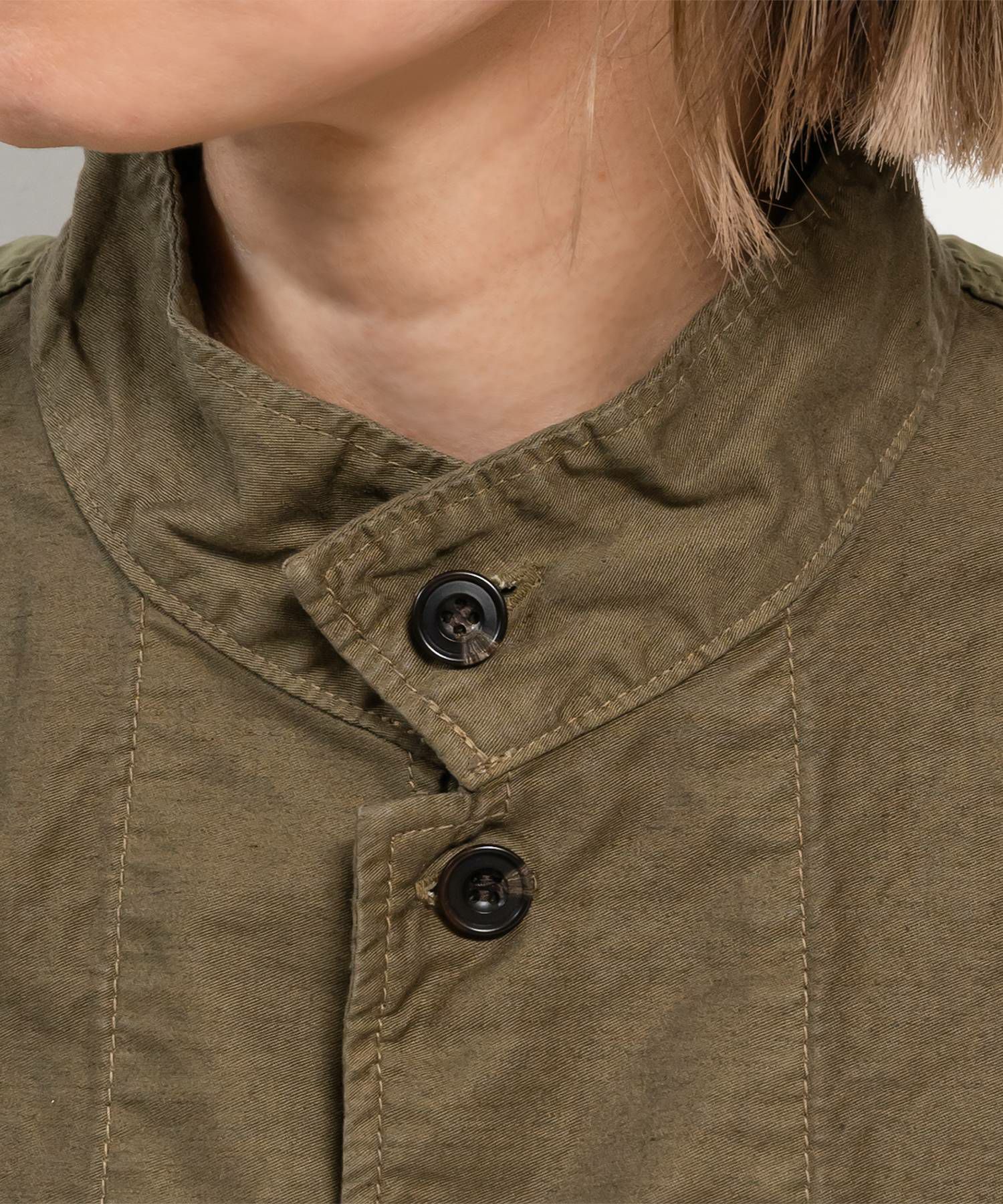BDドライ度詰め天竺布帛コンビ衿付きプルオーバーWOMEN【quadro×製品染め】