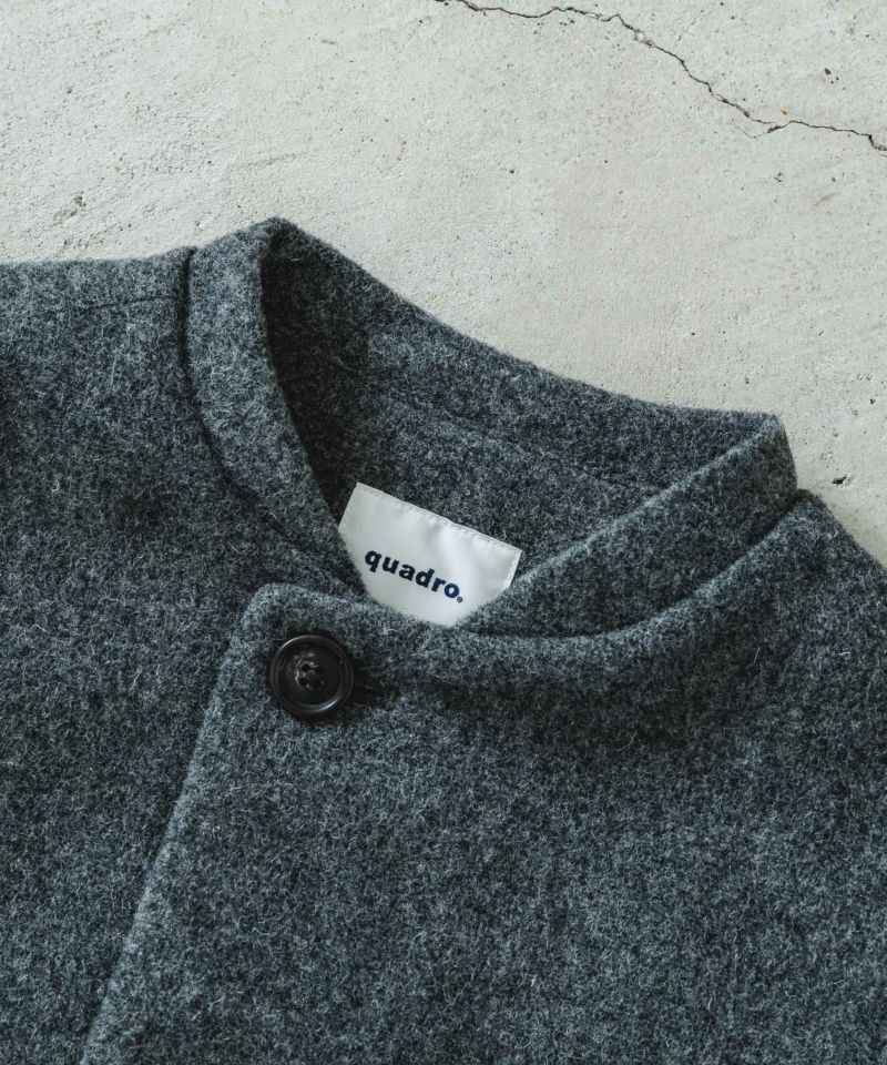このコートは「ブルゾンタイプの小さめスタンドカラー」を採用。