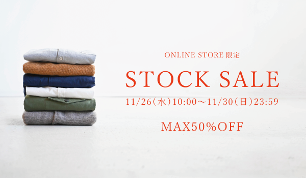 不定期に郊外路面店限定で行われてきたストックセールですが、11月26日10:00よりオンラインストア限定での開催が決定致しました!