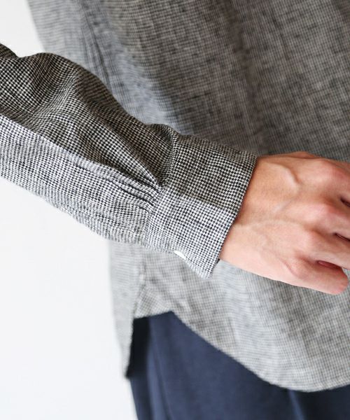 コットンリネンチェックチェックレギュラーシャツ